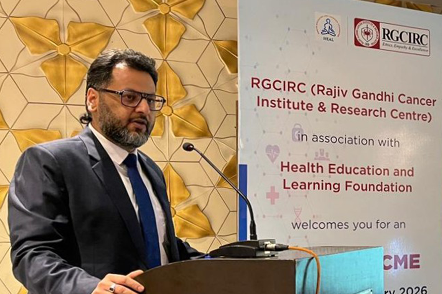 RGCIRC organized an Oncology CME in association with Health Education and Learning Foundation on Friday, 20th February 2026 at Panchshila Rendezvous, Malviya Nagar, New Delhi. Dr. Sunny Malik, Consultant In Charge, Dept. of Oncoanaesthesia, Pain and Palliative Medicine, RGCIRC, Niti Bagh, South Delhi delivered a lecture on “Pain Management and Palliative Care in Carcinoma Pancreas” and Dr. Naveen Kumar Kushwaha, Consultant, Surgical Oncology, RGCIRC, Niti Bagh, South Delhi spoke on “Principles of Surgical Oncology”.